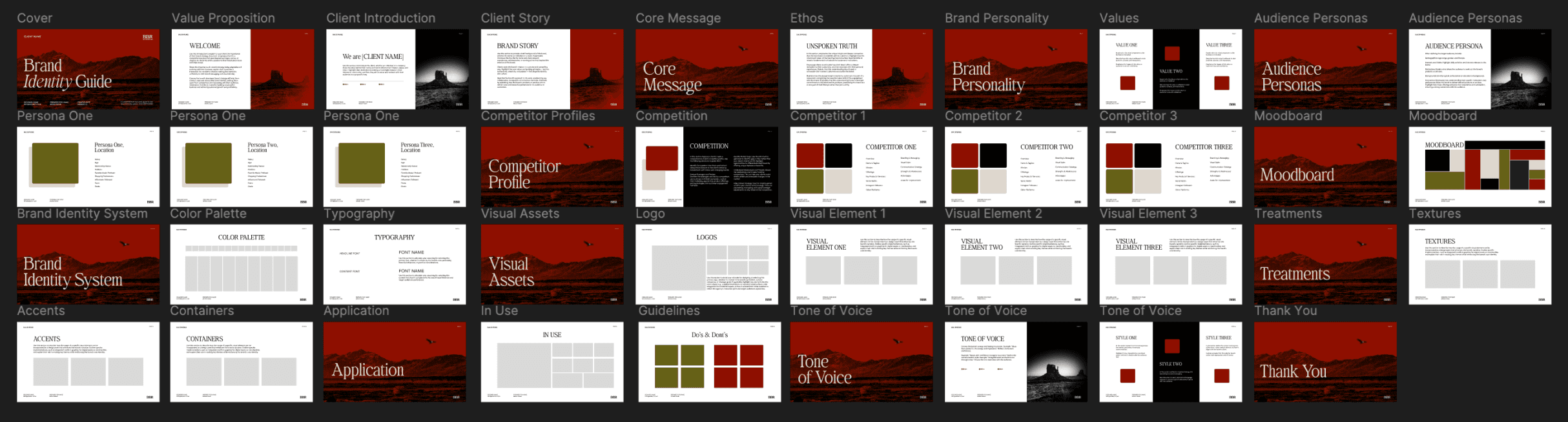 The challenge became clear: how might I design a system that ensures any designer can execute consistent, on-brand work independently, while still allowing flexibility for different brand personalities? Addressing this problem meant creating a template that was both comprehensive and intuitive, reducing reliance on the original designer and supporting long-term scalability.